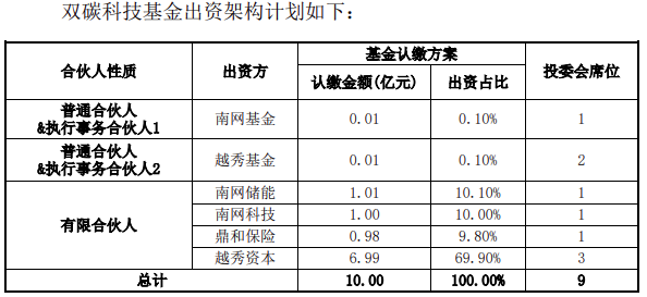 雙碳科技基金認繳出資總額不超過人民幣10億元,投資范圍包括投向儲能領(lǐng)域資產(chǎn)項目、儲能領(lǐng)域成長期項目及經(jīng)基金投決通過的能源電力領(lǐng)域投資項目。