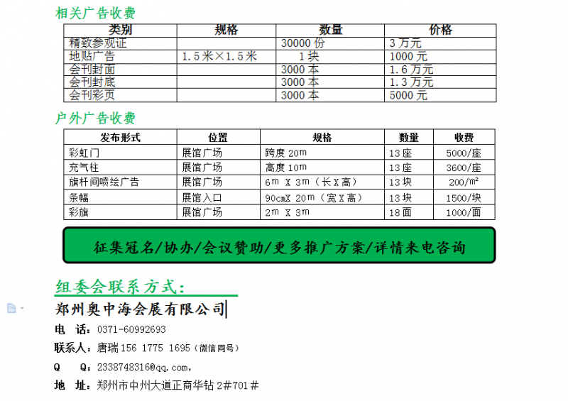 大會(huì)組委會(huì)采用地毯式推廣方式,將組織近百人邀約團(tuán)隊(duì),印刷十萬份邀請(qǐng)函和請(qǐng)柬,在全國各大能源、環(huán)保生產(chǎn)基地、專業(yè)市場(chǎng)、展會(huì)現(xiàn)場(chǎng),下游經(jīng)銷商、代理商、采購商、環(huán)保單位、工程公司、科學(xué)院校等進(jìn)行針對(duì)性推廣邀約。并聯(lián)合專業(yè)網(wǎng)站、雜志、互聯(lián)網(wǎng)、河南電視臺(tái)新農(nóng)村頻道、鄭州都市交通廣播等100余家合作媒體進(jìn)行推廣報(bào)道,切實(shí)保障參展商利益和參展效果。