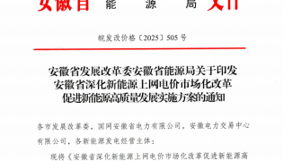 安徽省發(fā)改委、能源局聯(lián)合印發(fā)《深化新能源上網(wǎng)電價市場化改革促進(jìn)新能源高質(zhì)量發(fā)展實施方案》
