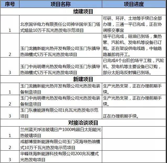 玉門建化工業(yè)區(qū)2019年重點項目:涉500MW光熱電站及配套裝備制造項目