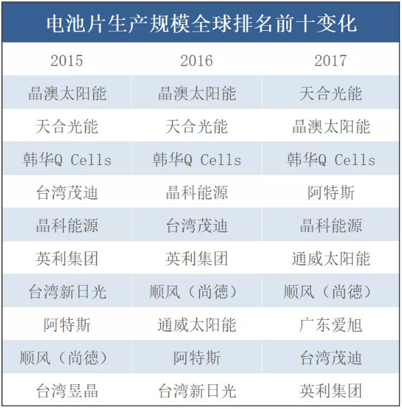 在光伏產(chǎn)業(yè)的中游,組件與電池片環(huán)節(jié)技術(shù)升級(jí)和降價(jià)速度較快。技術(shù)往往掌握在一線大廠的手中,技術(shù)成熟度及產(chǎn)能規(guī)模都是二、三線廠家難以超越的,雖然排名存在波動(dòng),但多是業(yè)內(nèi)知名企業(yè)掌握核心技術(shù)和成本優(yōu)勢(shì)。也因此這一環(huán)節(jié)的“隱形冠軍”最不明顯,下附近年來組件、電池片的企業(yè)排名及變化。