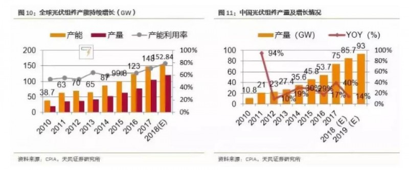 據(jù)統(tǒng)計,2018年年底疊瓦組件產(chǎn)能超過3GW,目前包括隆基股份、通威股份、東方環(huán)晟等公司都已經(jīng)布局疊瓦組件。根據(jù)蘇州晟成公眾號披露,目前正在擴產(chǎn)的預(yù)計有10GW左右。參考“硅片金剛線切割”和“PERC電池片”的產(chǎn)業(yè)化進(jìn)程來看,我們預(yù)計2019年疊瓦組件產(chǎn)能將加速提升。據(jù)CPIA統(tǒng)計,2018年全球組件產(chǎn)能達(dá)到152.8GW左右,中國組件產(chǎn)量為85.7GW。根據(jù)蘇州晟成官方公眾號,全球組件產(chǎn)能中,落后產(chǎn)能約為75GW,這部分產(chǎn)能將在未來5年被新技術(shù)快速淘汰掉。