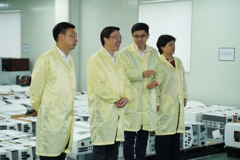 作為此行唯一被調(diào)研的高新技術企業(yè) ——寧波錦浪新能源科技股份有限公司,黃局長一行抵達錦浪科技后,與企業(yè)董事長王一鳴親切交談,深入了解了企業(yè)發(fā)展情況。當他得知企業(yè)從2005年白手起家,到成為分布式光伏發(fā)電系統(tǒng)核心設備組串式逆變器研發(fā)、生產(chǎn)、銷售和服務的行業(yè)領軍企業(yè)之一,并在今年初順利實現(xiàn)深交所A股上市表示祝賀,對王一鳴作為象山本土的“國家千人計劃”海歸人才回報家鄉(xiāng)、勇于創(chuàng)業(yè)精神表示欽佩,希望象山縣多挖掘培育這樣的創(chuàng)新型領軍企業(yè)。