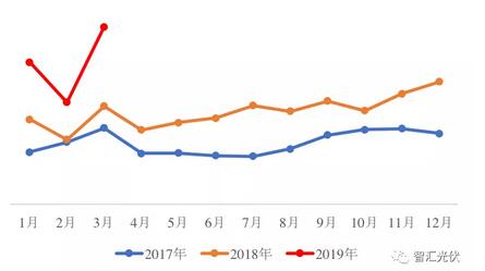根據(jù)海關(guān)出口數(shù)據(jù),2017年9月美國201法案實(shí)施以來,中國光伏組件的出口量逐月增加;2019年1~3月,國內(nèi)組件的總出口量達(dá)到15GW,同比增長70%!尤其是3月份,單月出口量超過6GW!