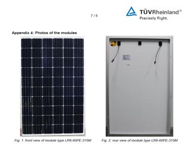 近日,隆基股份成員企業(yè)樂葉光伏收到“LR6-60PE-315M”型單晶組件通過TÜV萊茵的測試報告,報告顯示:基于60片P型PERC單晶156*156mm電池組件,在標(biāo)準(zhǔn)測試條件(STC)下的組件功率達(dá)到316.6W,功率刷新行業(yè)新高。據(jù)了解,測試數(shù)據(jù)是TÜV系統(tǒng)目前所測得的該型號最高功率。