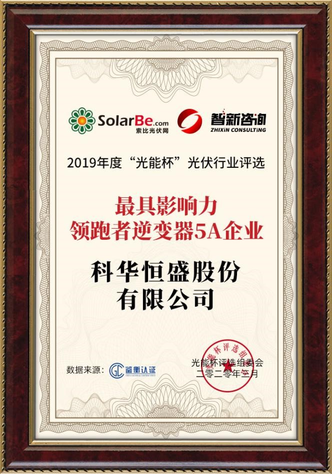 硬核!科華恒盛榮膺2019年領(lǐng)跑者逆變器5A企業(yè)大獎(jiǎng)