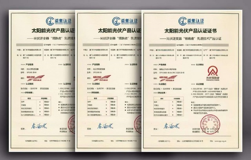 科華恒盛光伏逆變器“領(lǐng)跑者”先進(jìn)技術(shù)產(chǎn)品認(rèn)證證書(頒發(fā)單位:鑒衡認(rèn)證)