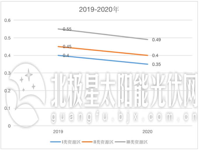 2019年國(guó)家發(fā)改委發(fā)布關(guān)于完善光伏發(fā)電上網(wǎng)電價(jià)機(jī)制有關(guān)問題的通知,將集中式光伏電站標(biāo)桿上網(wǎng)電價(jià)改為指導(dǎo)價(jià),納入國(guó)家財(cái)政補(bǔ)貼范圍的I~III類資源區(qū)新增集中式光伏電站指導(dǎo)價(jià)分別確定為每千瓦時(shí)0.40元、0.45元、0.55元。