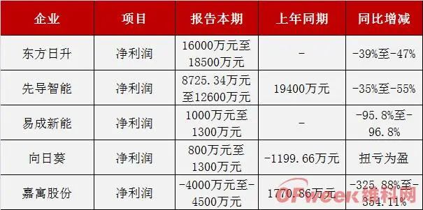 光伏設(shè)備端,除了晶盛機(jī)電(19.400,-0.58,-2.90%)外,大部分企業(yè)業(yè)績(jī)出現(xiàn)了虧損或不同程度的下滑。