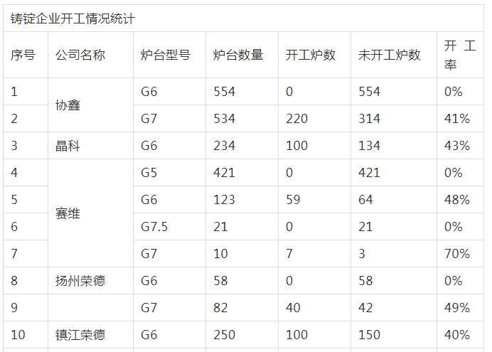 鑄錠企業(yè)開(kāi)工情況統(tǒng)計(jì)
