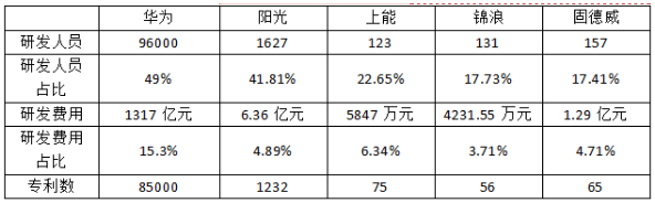 需要指出,華為的業(yè)務(wù)領(lǐng)域十分廣泛,在研發(fā)人員數(shù)量、費(fèi)用兩方面超過其他企業(yè)不足為奇。但從研發(fā)人員和費(fèi)用的占比來(lái)看,華為能快速成為逆變器龍頭、并連續(xù)5年穩(wěn)坐頭把交椅,還是付出了許多心血的。