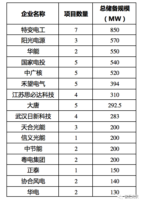 其次為陽光電源、華能、國家電投、中廣核,總儲備規(guī)模均超過500MW。