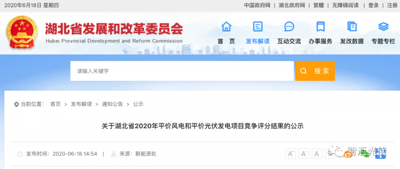 按照《國家能源局關(guān)于2020年風(fēng)電、光伏發(fā)電項目建設(shè)有關(guān)事項的通知》(國能發(fā)新能〔2020〕17號)要求,結(jié)合我省實際,我們組織市州申報了2020年平價風(fēng)電和平價光伏發(fā)電項目。近期,省能源局委托湖北省工程咨詢公司對市州申報的9個風(fēng)電項目(容量60.85萬千瓦)、74個光伏發(fā)電項目(容量592.946萬千瓦)進行了綜合評定和排序,省紀(jì)委監(jiān)委駐省發(fā)改委紀(jì)檢監(jiān)察組、省發(fā)改委機關(guān)紀(jì)委和省能源局能源監(jiān)管處對競爭評分工作進行了全程監(jiān)督。根據(jù)有關(guān)規(guī)定,現(xiàn)將評分結(jié)果在湖北省發(fā)改委門戶網(wǎng)站(fgw.hubei.gov.cn)進行公示。 公示時間為2020年6月18日至6月22日。公示期間,項目單位如對評分結(jié)果有異議的,請書面(請列舉理由和相關(guān)證明材料,注明聯(lián)系人和聯(lián)系方式并加蓋單位公章)向省能源局提出申請,由省能源局責(zé)成委托的第三方機構(gòu)集中時間進行復(fù)核,并在湖北省發(fā)改委門戶網(wǎng)站公布復(fù)核結(jié)果。受理時間截止2020年6月22日17時止。 聯(lián)系人及電話:省能源局新能源處肖光武,027-87235171省發(fā)改委機關(guān)紀(jì)委黃峰,027-87231292