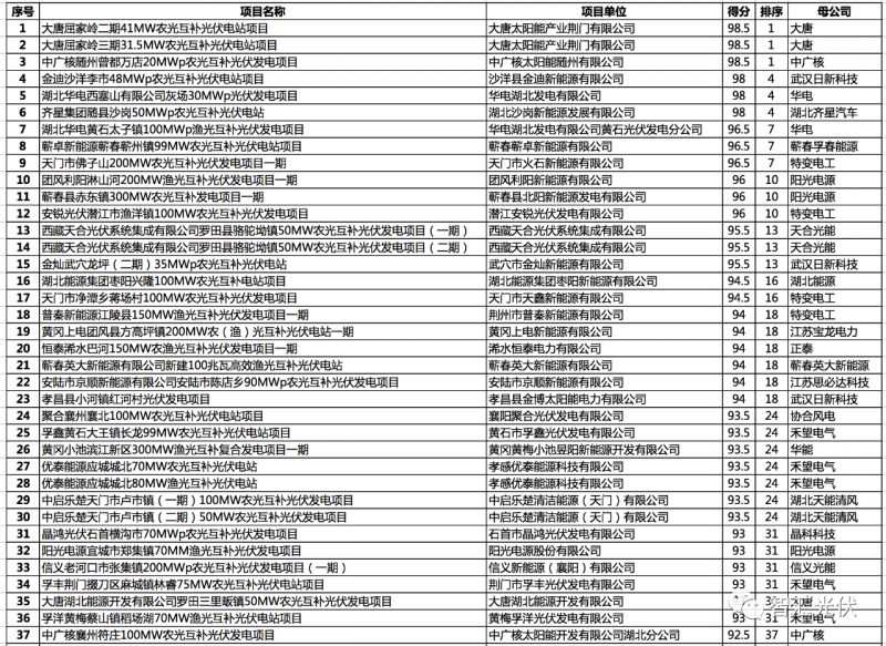 2.湖北省2020年平價光伏發(fā)電項目競爭評分排序表