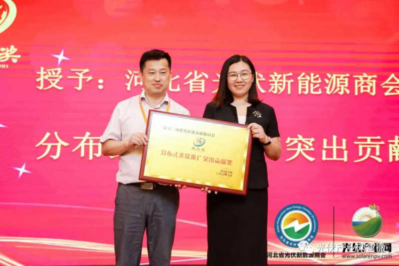 同時(shí),光伏產(chǎn)業(yè)網(wǎng)的總經(jīng)理張健為河北省光伏新能源商會(huì)頒發(fā)了分布式光伏推廣突出貢獻(xiàn)獎(jiǎng)。
