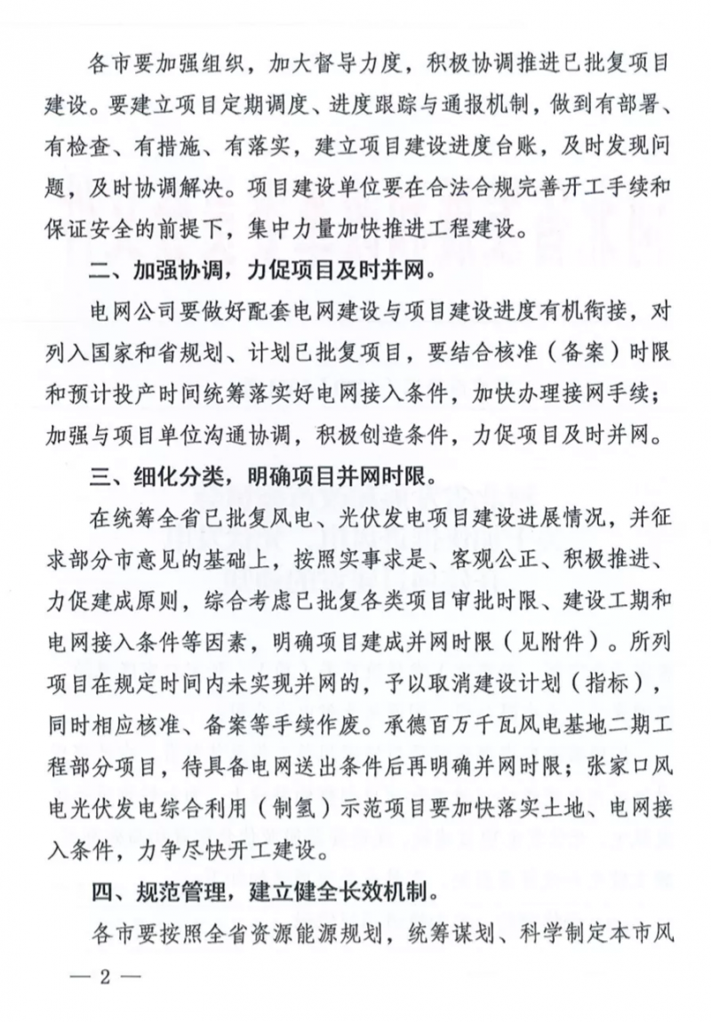 文件明確,上述四類項目在規(guī)定時間內(nèi)未實現(xiàn)并網(wǎng)的,予以取消建設(shè)計劃(指標(biāo)),同時相應(yīng)核準(zhǔn)、備案等手續(xù)作廢。