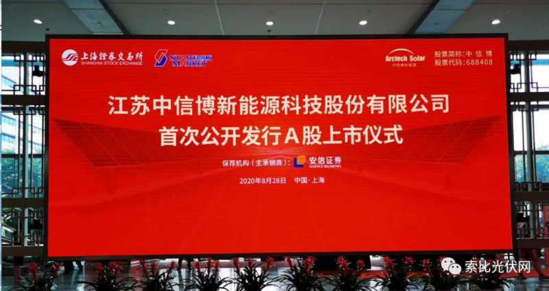 8月28日,江蘇中信博新能源科技股份有限公司董事長(zhǎng)蔡浩敲響銅鑼,宣布中信博正式登陸上交所科創(chuàng)板。第一次,有光伏支架制造企業(yè)進(jìn)入科創(chuàng)板的舞臺(tái)。
