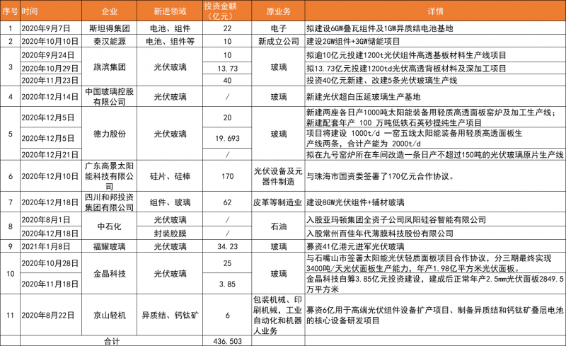 11家企業(yè)、超400億元跨界光伏制造,玻璃、硅片領銜攪動市場格局