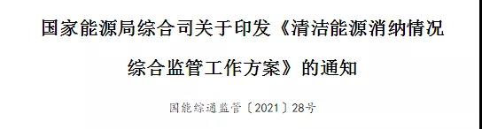 為深入貫徹《可再生能源法》,全面落實“碳達峰、碳中和”戰(zhàn)略目標和中央生態(tài)環(huán)境保護督察要求,促進清潔能源消納,根據(jù)我局《2021年能源監(jiān)管重點任務清單》(國能發(fā)監(jiān)管〔2021〕5號)安排,我們研究制定了《清潔能源消納情況綜合監(jiān)管工作方案》,現(xiàn)印發(fā)給你們,請認真組織實施。有關要求如下: