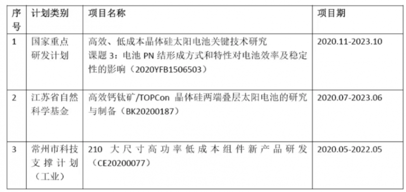 3月31日,天合光能發(fā)布《2020年年度報(bào)告》。年報(bào)顯示,公司正在開展鈣鈦礦/晶硅兩端疊層太陽電池的設(shè)計(jì)、制備研究。進(jìn)展包括:1、單節(jié)寬帶隙鈣鈦礦太陽電池效率的相關(guān)突破,基于1.62eV和1.70eV帶隙鈣鈦礦單節(jié)電池效率分別為20.32%和19.67%;2、天合實(shí)驗(yàn)室N型TOPCon效率24%以上。擬達(dá)到目標(biāo):鈣鈦礦/TOPCon兩端疊層太陽電池效率大于29%。