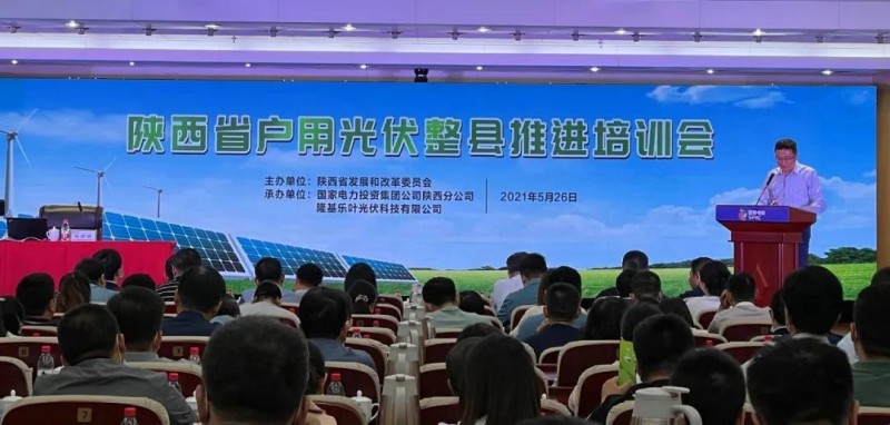 5月26日上午,由陜西省發(fā)展和改革委員會主辦,國家電力投資集團公司陜西分公司、隆基樂葉光伏科技有限公司承辦的陜西省戶用光伏整縣推進工作培訓會在西安舉辦。陜西省各市縣區(qū)發(fā)改部門相關業(yè)務負責人、在陜金融機構相關業(yè)務負責人、在陜電力相關企業(yè)代表等近300人參加培訓。此次培訓旨在加快建立健全陜西省綠色低碳循環(huán)發(fā)展經(jīng)濟體系,促進光伏發(fā)電產(chǎn)業(yè)持續(xù)健康發(fā)展,助力實現(xiàn)“碳達峰、碳中和”目標。