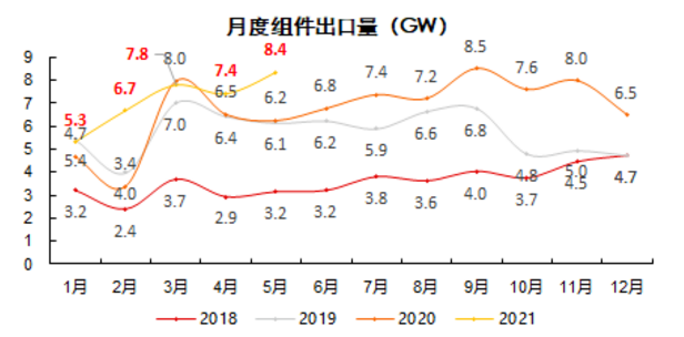 5月光伏組件出口超預期,接近去年峰值