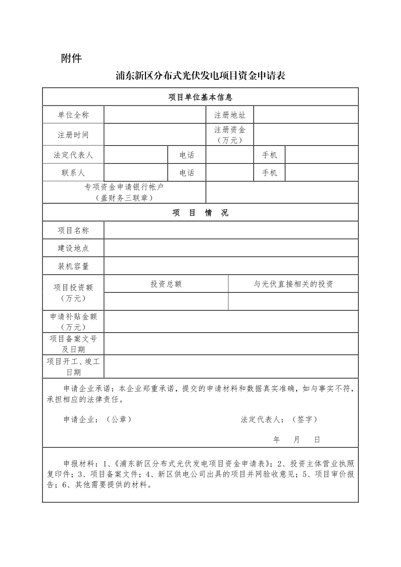 1.《浦東新區(qū)分布式光伏發(fā)電項(xiàng)目資金申請(qǐng)表》;