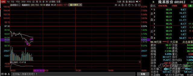 8月31日開盤后,隆基股份低開低走,一度跌超9%。截至發(fā)稿,報90.27元,跌7.23%。