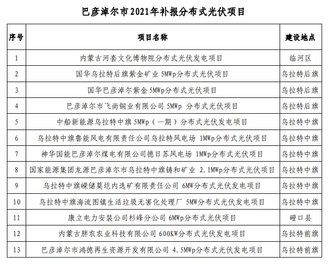 關于對2021年巴彥淖爾市補報 分布式光伏項目競爭優(yōu)選結果的公示