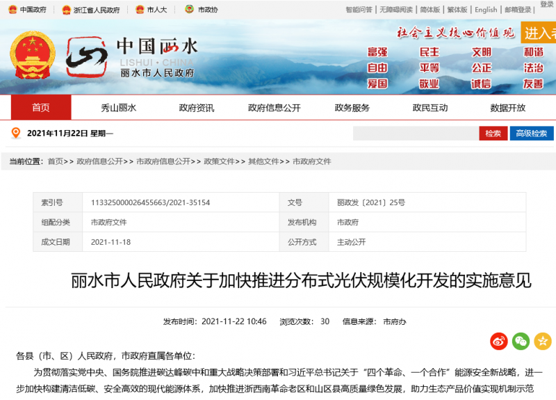 麗水市關(guān)于加快推進分布式光伏規(guī)?;_發(fā)的實施意見