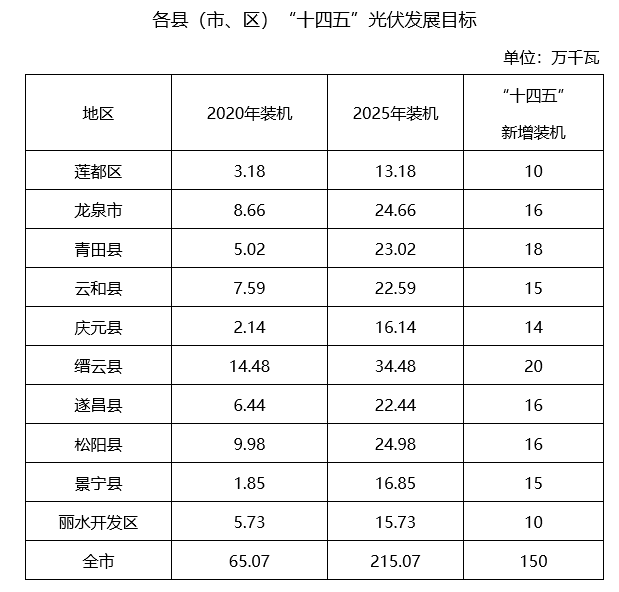 全面貫徹黨的十九大和十九屆二中、三中、四中、五中全會精神,認(rèn)真落實國家和省碳達峰碳中和工作部署,牢牢把握生態(tài)文明建設(shè)要求,加強統(tǒng)籌協(xié)調(diào),創(chuàng)新發(fā)展模式,加快調(diào)整優(yōu)化能源結(jié)構(gòu),以分布式光伏整縣(市、區(qū))規(guī)?;_發(fā)為抓手,全面實施“光伏+”工程,推動綠色低碳能源產(chǎn)業(yè)高質(zhì)量發(fā)展,著力打造華東綠色能源基地。力爭“十四五”全市新增光伏發(fā)電150萬千瓦,其中市區(qū)(含蓮都區(qū)、麗水經(jīng)濟開發(fā)區(qū))新增光伏發(fā)電20萬千瓦。
