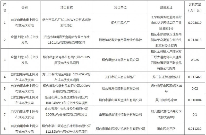 總裝機(jī)80.19kW,山東煙臺(tái)無(wú)補(bǔ)貼平價(jià)上網(wǎng)光伏項(xiàng)目清單公布