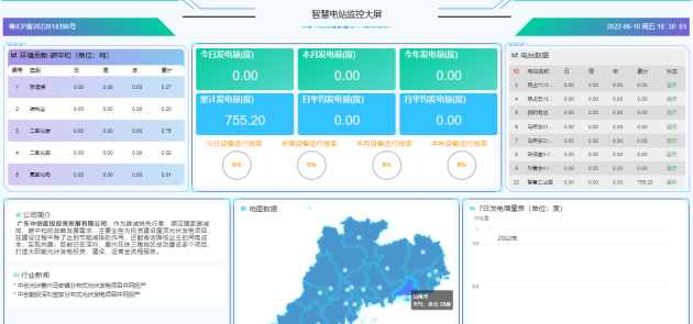 順應(yīng)數(shù)字孿生的城市發(fā)展時代要求、智慧園區(qū)的管理要求,廣東中創(chuàng)能投投資發(fā)展有限公司自主研發(fā)“中創(chuàng)智慧能源管理系統(tǒng)”。該系統(tǒng)上線后將無縫對接園區(qū)智慧管理系統(tǒng),實現(xiàn)一屏管理,實時監(jiān)控園區(qū)分布式光伏電站的運營狀態(tài)、發(fā)電數(shù)據(jù)、設(shè)備狀態(tài)等信息。