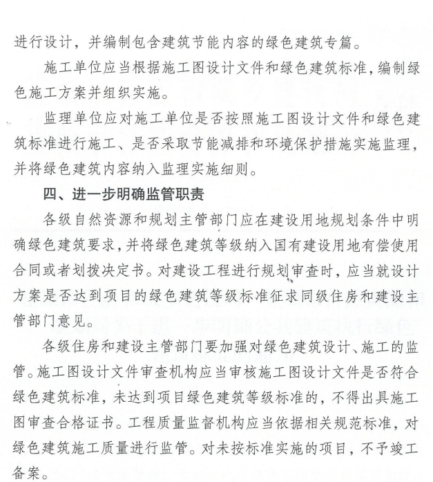 未達(dá)到項(xiàng)目綠色建筑等級(jí)標(biāo)準(zhǔn)的,不得出具施工圖審查合格證書。工程質(zhì)量監(jiān)督機(jī)構(gòu)應(yīng)當(dāng)依據(jù)相關(guān)規(guī)范標(biāo)準(zhǔn),對綠色建筑施工質(zhì)量進(jìn)行監(jiān)管。對未按標(biāo)準(zhǔn)實(shí)施的項(xiàng)目,不予竣工備案。