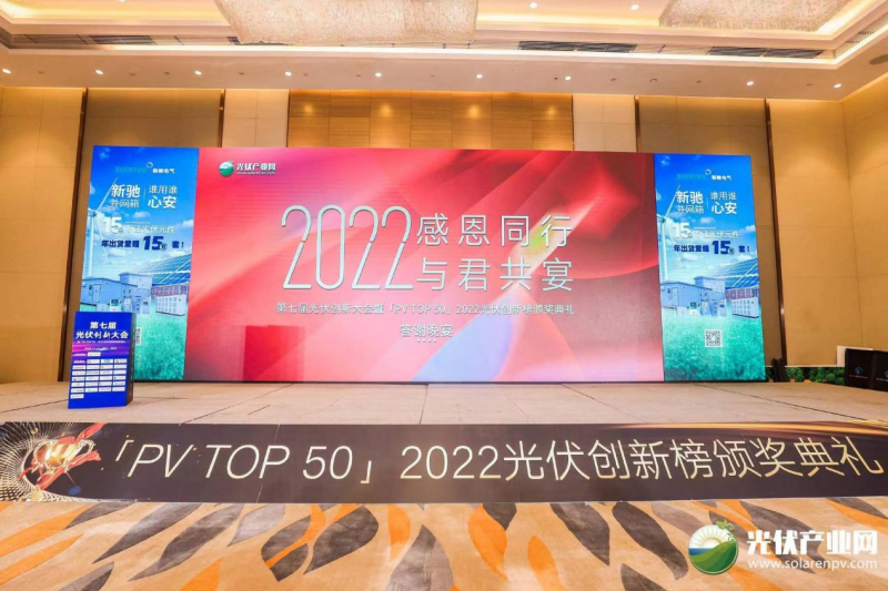11月21日,「PV TOP 50」2022光伏創(chuàng)新榜頒獎(jiǎng)典禮(「PV TOP 50」2022光伏行業(yè)創(chuàng)新力企業(yè)50強(qiáng)榜單發(fā)布)在浙江·杭州圓滿落下帷幕!