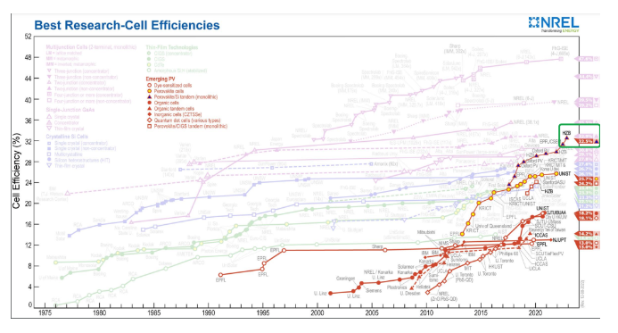 在此之前,2022年8月瑞士洛桑聯(lián)邦理工學(xué)院(EPFL)和瑞士電子與微技術(shù)中心(CSEM)宣布,合作創(chuàng)造了鈣鈦礦/硅疊層太陽(yáng)能電池新的轉(zhuǎn)化效率世界紀(jì)錄,突破了30%的里程碑,獲得美國(guó)能源部國(guó)家可再生能源實(shí)驗(yàn)室的權(quán)威認(rèn)證。