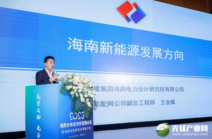 海南電力設計研究院是海南省唯一具有工程資信評價甲級、電力工程甲級和工程設計甲級的“三甲”資質(zhì)國家電力工程勘測設計企業(yè),深耕海南近30載,取得了優(yōu)異的成績。中國電建集團海南電力設計研究院有限公司智能配網(wǎng)公司副總工程師王業(yè)耀在會上向來賓分析了目前海南能源結(jié)構(gòu)不斷優(yōu)化、低碳轉(zhuǎn)型效果顯著的新能源發(fā)展現(xiàn)狀,指出太陽能發(fā)電總體呈現(xiàn)有序快速發(fā)展,漁光為主、分布式為輔的特點,認為在雙碳背景下,清潔低碳、綠色發(fā)展是未來海南電力系統(tǒng)的基本底色,對于海南十四五新能源展望,他希冀到2025年海南省清潔能源裝機達到85%,2030年全省新建建筑100%符合綠色建筑規(guī)范。