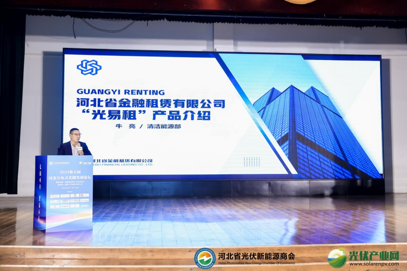 河北省金融租賃有限公司分布式能源團(tuán)隊(duì)負(fù)責(zé)人牛亮迎合大會(huì)主題,帶來專為工商業(yè)分布式光伏電站項(xiàng)目提供融資服務(wù)產(chǎn)品“光易租”,自發(fā)自用和全額上網(wǎng)項(xiàng)目均可,高效滿足企業(yè)投資分布式光伏項(xiàng)目的融資支持和光伏設(shè)備采購需求,與廠商、EPC、企業(yè)攜手開創(chuàng)產(chǎn)融結(jié)合新局面。