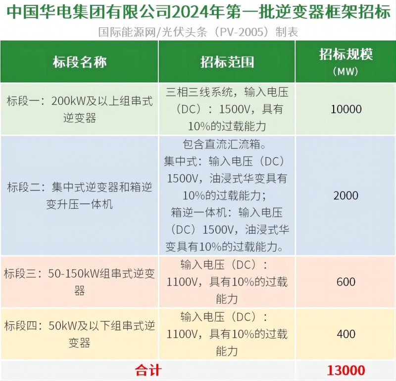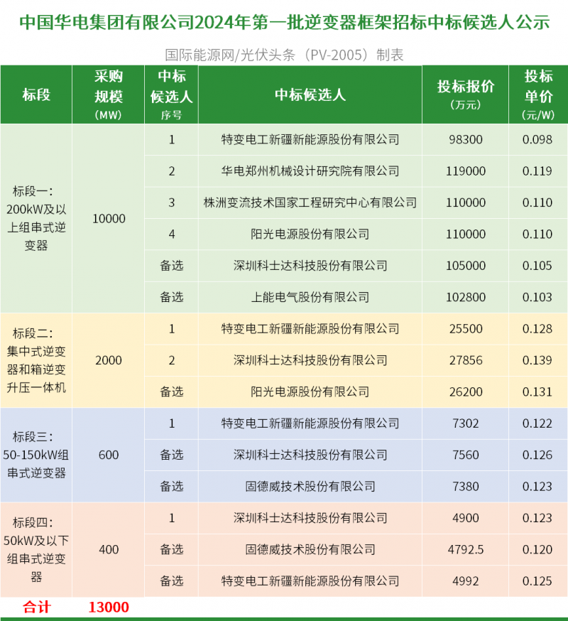 4月29日,中國華電集團有限公司2024年第一批逆變器框架招標中標候選人公示。