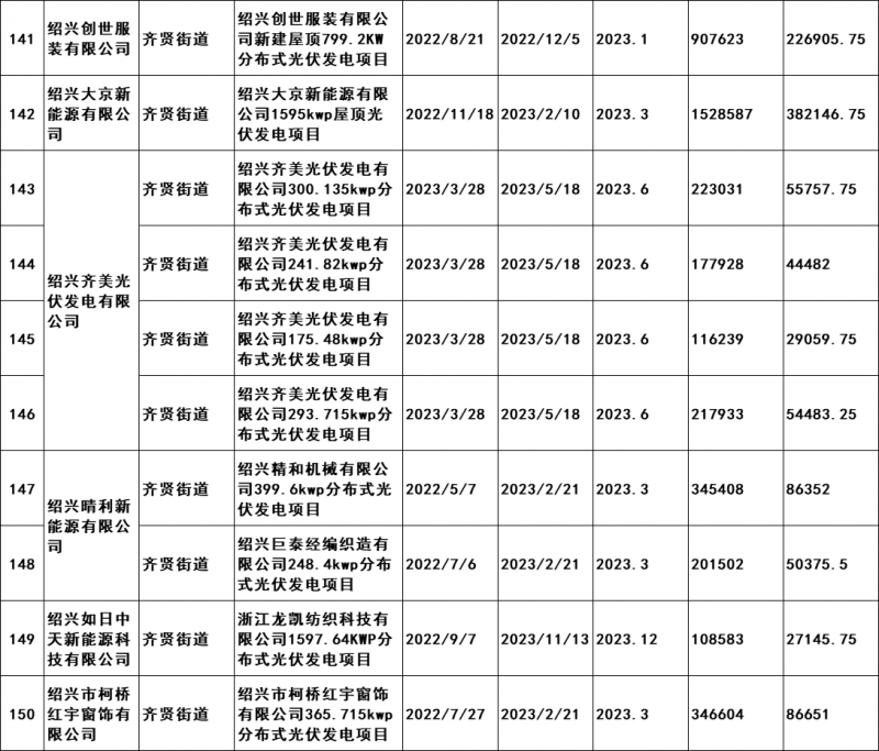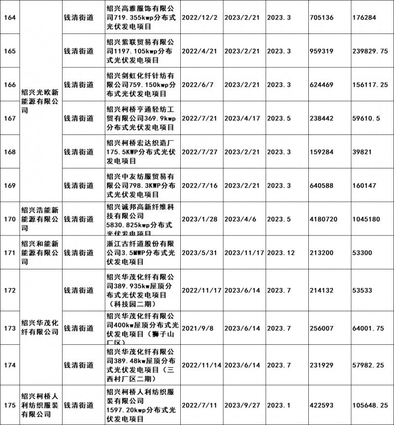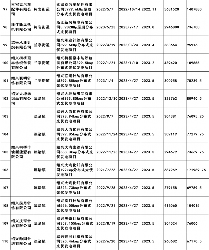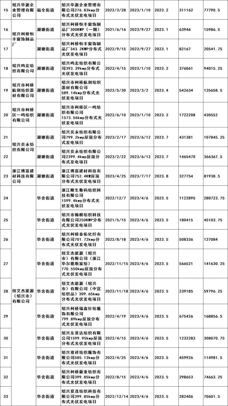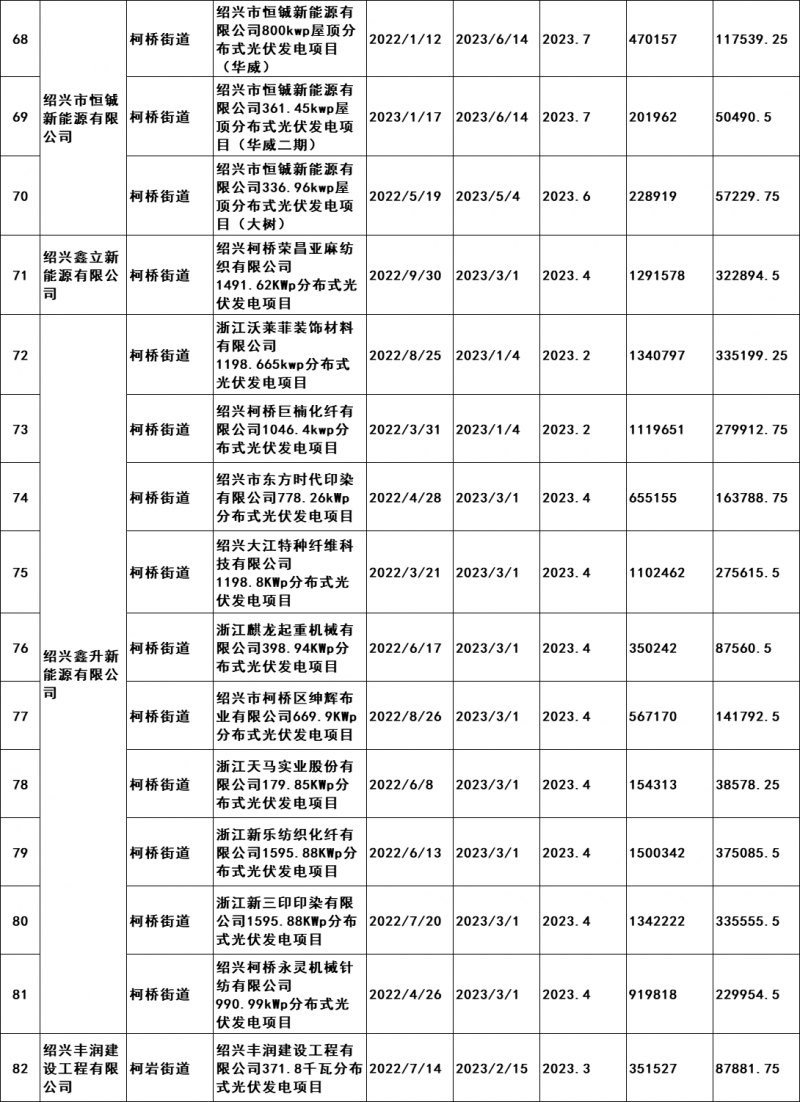 附件:柯橋區(qū)整區(qū)屋頂分布式光伏開發(fā)試點(diǎn)建設(shè)補(bǔ)助明細(xì)表