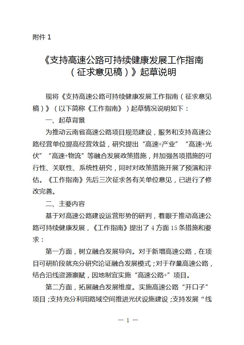 1.《支持高速公路可持續(xù)健康發(fā)展工作指南(征求意見稿)》起草說明