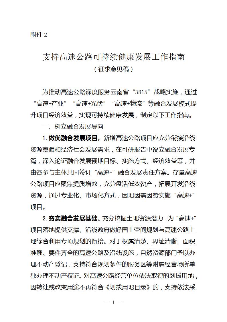 2.《支持高速公路可持續(xù)健康發(fā)展工作指南(征求意見稿)》