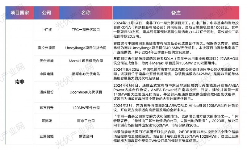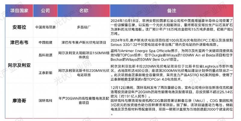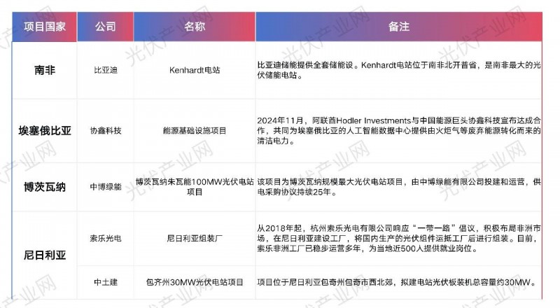 中國(guó)企業(yè)在非洲光儲(chǔ)布局(不完全統(tǒng)計(jì))