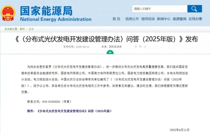 核心提示: 4月11日,國家能源局發(fā)布《〈分布式光伏發(fā)電開發(fā)建設(shè)管理辦法〉問答(2025年版)》
