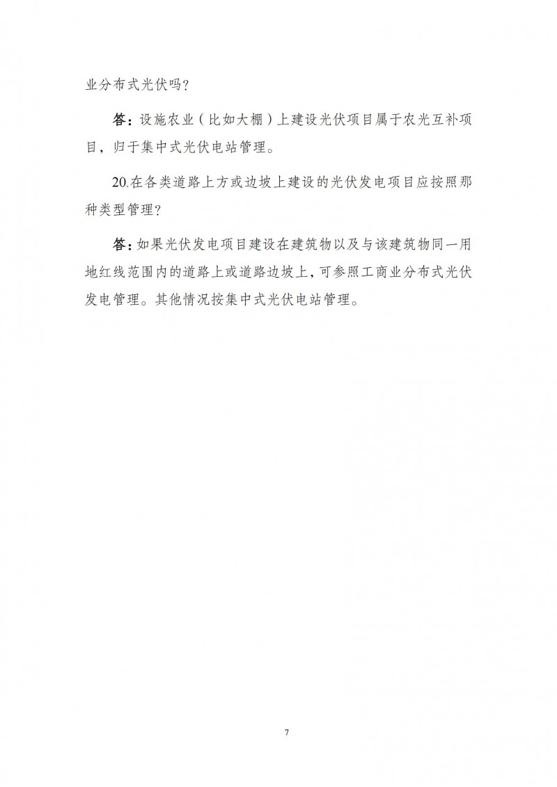 答:如果光伏發(fā)電項(xiàng)目建設(shè)在建筑物以及與該建筑物同一用地紅線范圍內(nèi)的道路上或道路邊坡上,可參照工商業(yè)分布式光伏發(fā)電管理。其他情況按集中式光伏電站管理。
