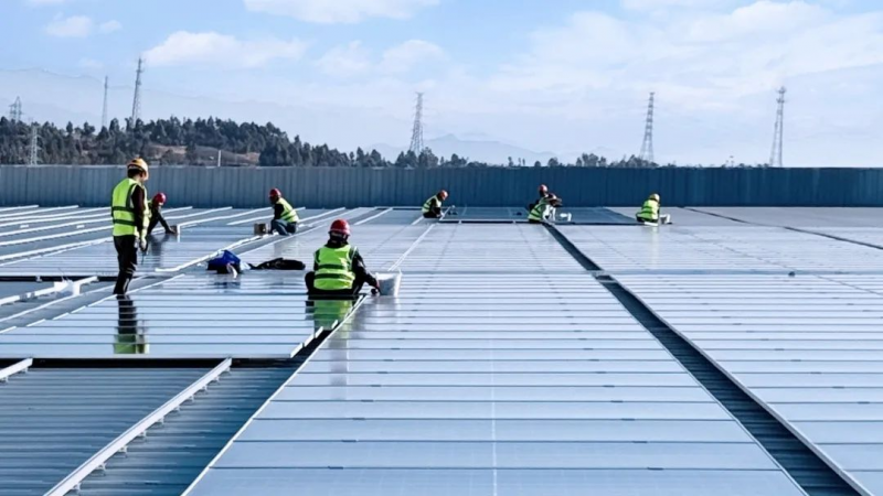 鴻新新能源單晶硅片產(chǎn)業(yè)園綠電直供源網(wǎng)荷儲(chǔ)一體化先鋒示范項(xiàng)目,計(jì)劃光伏裝機(jī)總?cè)萘考s26.65MW,分散式風(fēng)電60MW,分多期建設(shè)。本次投運(yùn)的一期5.15MW光伏電站,采用了8800余塊高效單晶硅雙玻組件,預(yù)計(jì)年發(fā)綠電超900萬度,年減排二氧化碳量相當(dāng)于種植近30萬棵樹。完整項(xiàng)目將系統(tǒng)整合分布式光伏發(fā)電、分布式風(fēng)電、儲(chǔ)能系統(tǒng)、智慧平臺(tái)及柔性調(diào)控技術(shù),形成閉環(huán)能源網(wǎng)絡(luò)。