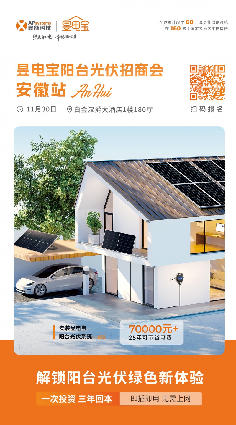 在全球能源轉型加速的背景下,陽臺光伏以靈活適配、即發(fā)即用的優(yōu)勢,正成為分布式能源領域新增長點。如何挖掘這一潛力巨大的市場藍海?“昱電寶陽臺光伏招商會—安徽站”將于11月30日在中國·合肥舉辦,重點探討陽臺光伏市場需求、技術創(chuàng)新突破路徑、工商業(yè)儲能合作機遇等核心議題,掃描下方二維碼即可搶占席位↓