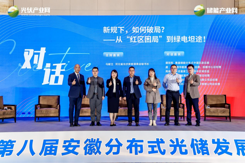 在備受矚目的圓桌對(duì)話環(huán)節(jié),河北省光伏新能源商會(huì)秘書(shū)長(zhǎng)馬獻(xiàn)立與隆基綠能分布式中國(guó)區(qū)副總裁譚雙陽(yáng)、港華能源助理副總裁、皖贛中心總經(jīng)理虞琴、天合富家工商業(yè)華中區(qū)域總監(jiān)周俊杰、碧澄能源華東事業(yè)部副總經(jīng)理張立、安徽烈陽(yáng)光伏新能源有限公司總經(jīng)理周海、安徽沐能低碳建設(shè)投資有限公司總經(jīng)理張亞西就“新規(guī)下,如何破局?—-從“紅區(qū)困局”到綠電坦途!”展開(kāi)了一場(chǎng)熱烈而深入的思想碰撞。