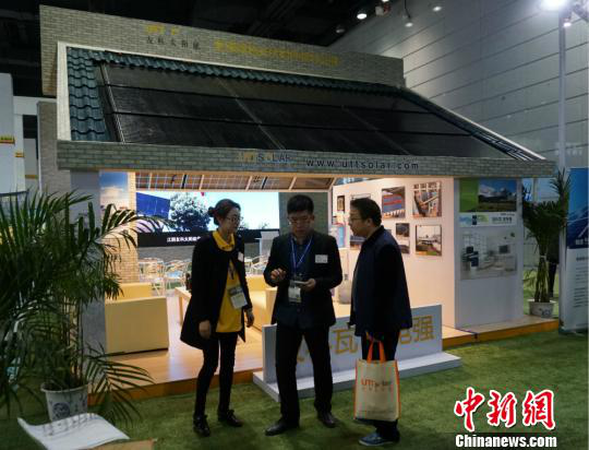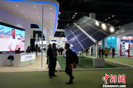 第八屆中國(guó)(無(wú)錫)國(guó)際新能源大會(huì)暨展覽會(huì),參觀嘉賓在碩大的太陽(yáng)能板下停留。 孫權(quán) 攝