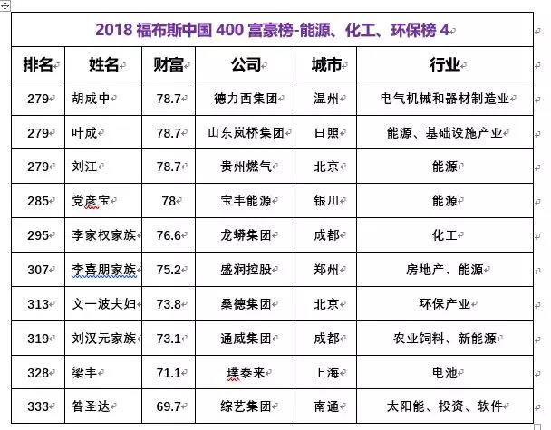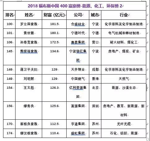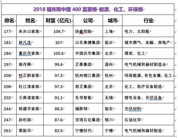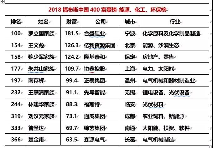 除了馬云、馬化騰、許家印、王健林等“???rdquo;之外,還有諸多涉足能源、化工、環(huán)保領域的知名企業(yè)家入選,比如光伏領域的朱共山、劉漢元、南存輝等人及其家族,以及新奧集團王玉鎖家族等。